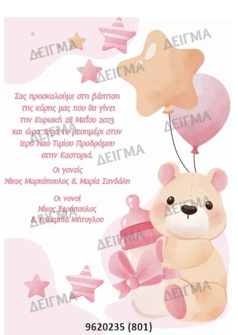 ΠΡΟΣΚΛΗΤΗΡΙΟ ΒΑΠΤΙΣΗΣ ΑΡΚΟΥΔΑΚΙ 801