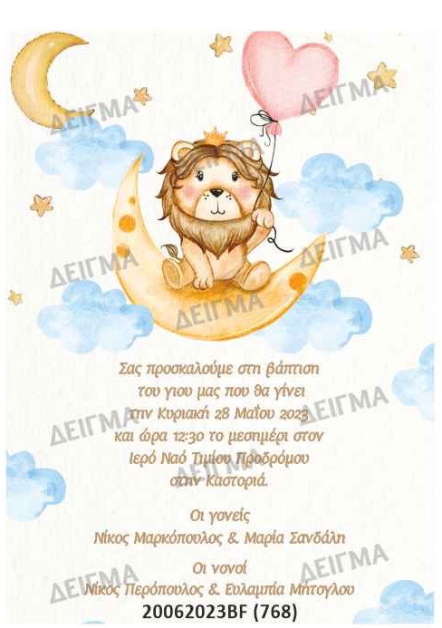 ΠΡΟΣΚΛΗΤΗΡΙΟ ΒΑΠΤΙΣΗΣ ΛΙΟΝΤΑΡΙ ΦΕΓΓΑΡΑΚΙ 768