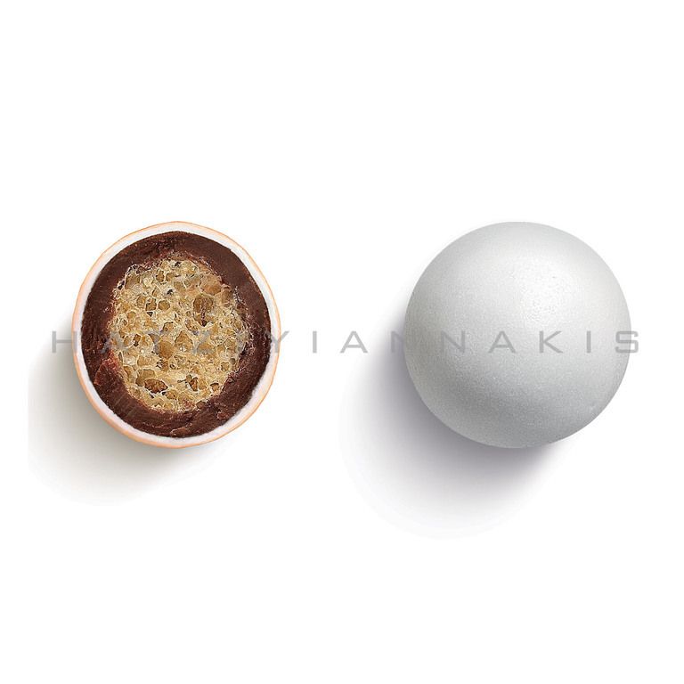Τραγανός πυρήνας από δημητριακά & σοκολάτα γάλακτος με λεπτή επικάλυψη ζάχαρης.